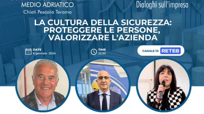 Il format tv di Confindustria Abruzzo Medio Adriatico e Rete 8 andrà in onda lunedì 6 gennaio alle 22:30, sul canale 10 del digitale terrestre e affronterà un tema di fondamentale importanza per il mondo delle imprese e del lavoro: la cultura della sicurezza.