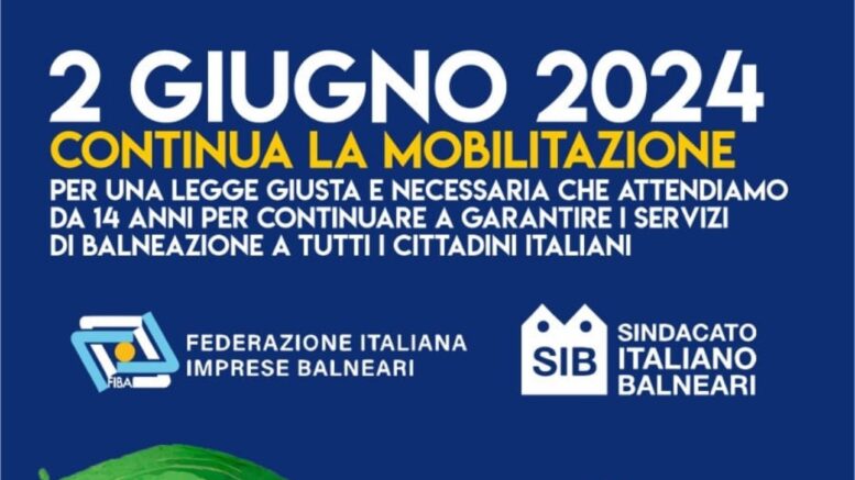 “Noi siamo un’ organizzazione seria, una categoria che sta tutti i giorni sul posto di lavoro per garantire la balneabilità e la sicurezza in spiaggia e in mare dei bagnanti, e allo stesso tempo per garantire e offrire servizi di qualità. La balneazione attrezzata merita di essere garantita da imprenditori che nel tempo hanno costruito questo tipo di impresa. Perciò riteniamo che il 2 giugno, Festa della Repubblica, si possa lanciare questo messaggio. Ci spiace nel giorno in cui siamo al fianco dell’Italia, dover ricorrere a queste proteste e a questi messaggi quando invece – prosegue Padovano – dovrebbe accadere il contrario con la politica ad interessarsi ai problemi del la categoria e a lavorare e legiferare per risolverli e a fare chiarezza con gli enti locali sulla materia delle gare di appalto. Il risultato è la grande confusione che continua a regnare sovrana così come è. La confusione c’è perché manca una norma seria, chiara visto che da undici anni aspettiamo una nuova legge che deve essere il Parlamento a fare e non un’altra istituzione. Le leggi devono essere fatte dalla Politica e per questo ci rivolgiamo ai parlamentari affinché si possa mettere mano definitivamente ad una nuova Legge scrivendo una pagina nuova per la balneazione attrezzata in Italia”.