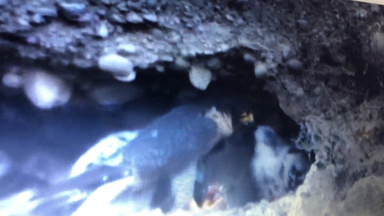 Due video girati nel teramano in questi giorni documentano una delle fasi più rilevanti della vita del Falco pellegrino, l’imbeccata dei pulcini al nido da parte dell’adulto.