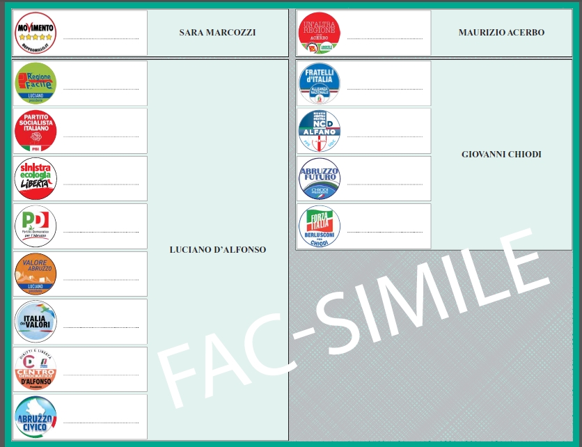 Gli elettori abruzzesi indicheranno il nuovo Consiglio regionale composto da 31 consiglieri: due di questi verranno eletti con il sistema maggioritario e saranno il neo eletto Presidente della Giunta regionale e il candidato classificatosi secondo con la quota elettorale immediatamente inferiore a quella del vincitore; gli altri 29 verranno eletti nelle quattro circoscrizioni con il sistema proporzionale. I risultati dello scrutinio verranno resi noti in via ufficiosa dall’Ufficio elettorale della Regione Abruzzo. Gli stessi risultati e l’assegnazione ufficiale dei seggi e l’indicazione dei consiglieri eletti verranno successivamente validati e ufficializzati dalla Corte d’appello dell’Aquila.