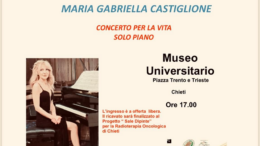 Oggi, alle ore 17, nell’auditorium del Museo Universitario di Chieti, concerto per pianoforte della pianista Maria Gabriella Castiglione per sostenere il progetto ‘Sale dipinte’ dell’Associazione…