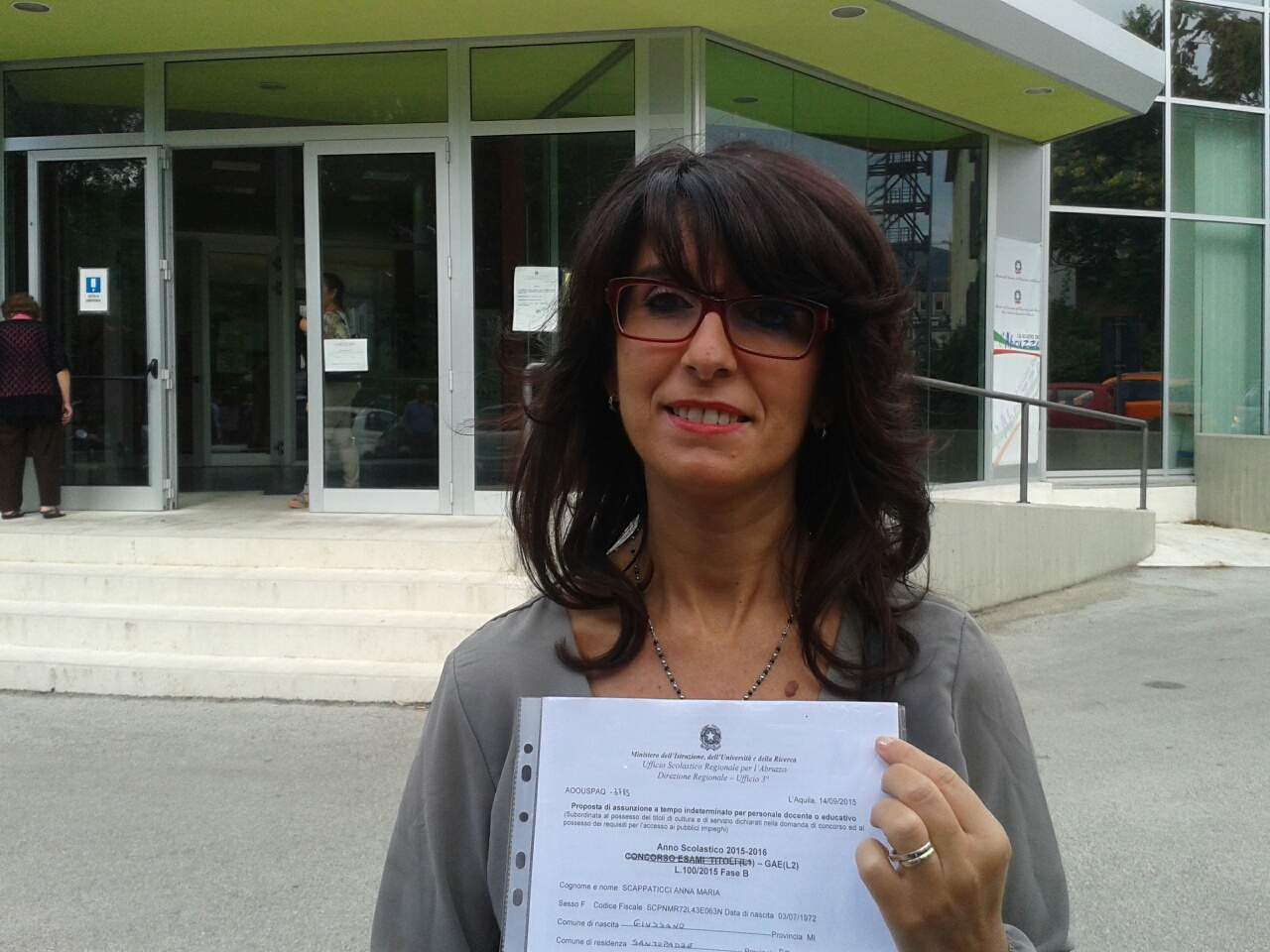 La storia di Anna Maria Scappaticci, da Frosinone a L’Aquila per insegnare Chimica. Assunta a 43 anni con il piano straordinario di assunzione della scuola….