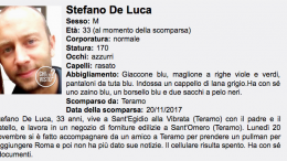 Risulta scomparso dal 20 novembre un abruzzese di 33 anni. L’uomo si chiama Stefano De Luca e vive a Sant’Egidio alla Vibrata con il padre…