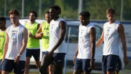 Pescara calcio. Ripresa della preparazione al comunale di Silvi Marina. Primo allenamento per i neo biancazzurri Vinciguerra, Corazza, Caligara, Okwonkwo e Tsadjout. A parte Tonin…