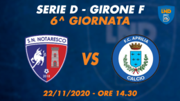 Si gioca domani alle 14:30 S.N. Notaresco Aprilia, recupero della 6^ giornata del campionato di serie D, girone F. Gara a porte chiuse; diretta streaming…