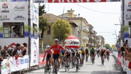 Sprint vincente di Alessio Magagnotti nella quarta e ultima tappa del Giro d’Abruzzo Juniores; la maglia azzurra di leader sulle spalle di Francesco Baruzzi A…