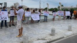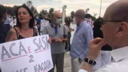 Cittadini esasperati per la crisi idrica e per le continue chiusure dei rubinetti scendono in piazza, davanti alla Nave di Cascella, a Pescara, con striscioni…