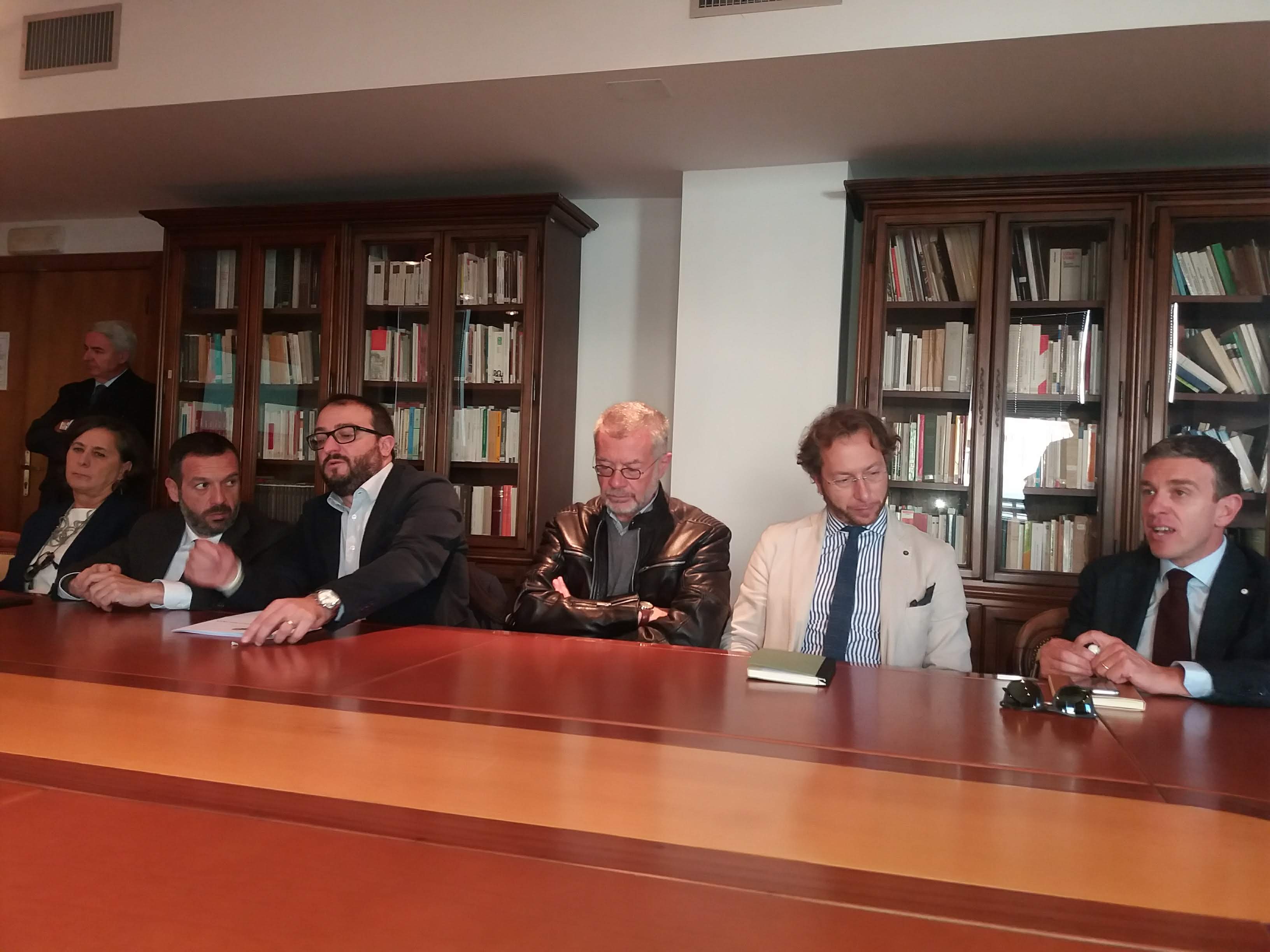 Alla presentazione del progetto nella sala Silone del Consiglio regionale, questa mattina c’erano Lorenzo Sospiri, il sindaco dell’Aquila Pierluigi Biondi, gli assessori comunali Vittorio Fabrizi e Carla Mannetti, il consigliere regionale Americo Di Benedetto, il consigliere comunale e provinciale Luca Rocci, la soprintendente Alessandra Vittorini, il direttore dell’Ufficio speciale per la ricostruzione Salvo Provenzano, il presidente della Gran Sasso Acqua Fabrizio Ajraldi oltre al direttore dell’Attività amministrativa di Regione Abruzzo Paolo Costanzi e all’architetto Maurizio Blair dell’ufficio tecnico del Consiglio regionale.