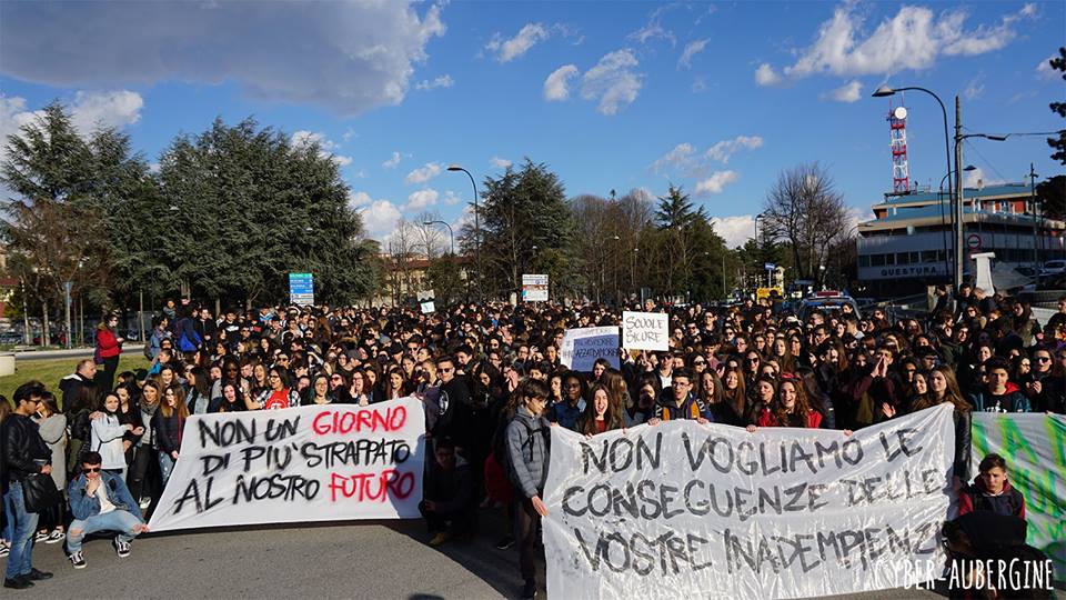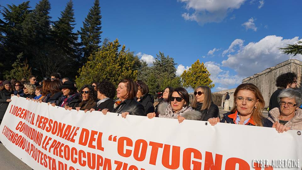 L’edificio, realizzato negli anni ’80, è diventato il simbolo della protesta degli studenti, dei docenti e dei genitori che chiedono allo Stato e alle istituzioni di fare chiarezza sulla tenuta strutturale delle scuole. Chiuso per un mese, due giorni fa la Provincia ha deciso di riaprire una parte dell’edificio, ritenuto stabile e sicuro dopo le ultime indagini degli ingegneri e da lunedì in questa parte di edificio dovrebbero riprendere le lezioni. Ma gli studenti dopo gli ultimi eventi sismici non vogliono più rischiare e chiedono di poter andare a scuola su banchi sicuri. La protesta ha toccato la sua punta più intensa ieri pomeriggio, con un corteo partecipatissimo anche dai genitori – praticamente tutti gli studenti del Liceo Cotugno e i loro professori e genitori , ma anche i ragazzi di altre scuole – da Colle Sapone, dove gli studenti sono stati dirottati nell’ultimo mese con lezioni pomeridiane, fino al parco del Castello. Striscioni e slogan, dirette Facebook, canti e musica: per dire che loro non ci stanno a tornare in classe nelle stesse condizioni di prima. E la decisione della Provincia di riaprire così rapidamente non piace nemmeno ai professori, per i quali “è estremamente gravosa la riorganizzazione degli orari delle classi e dei docenti”, sostengono.