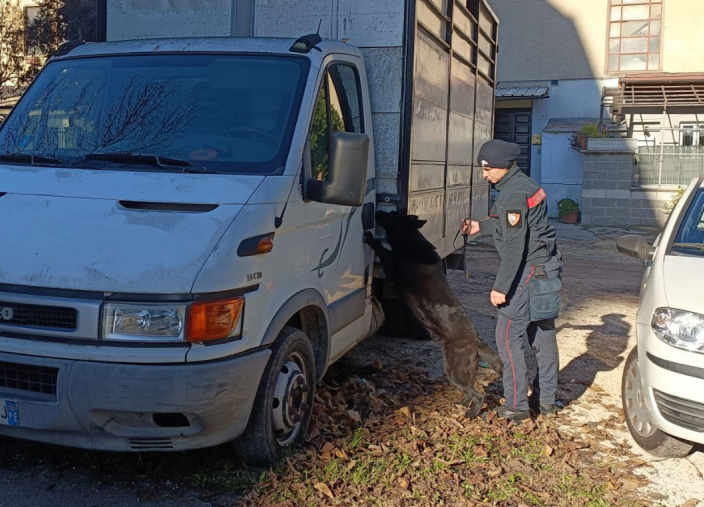 A Montesilvano i Carabinieri scoprono 100 grammi di hashish occultati nel cruscotto di un autocarro fermato per un controllo: fondamentale il fiuto del cane Gipsy