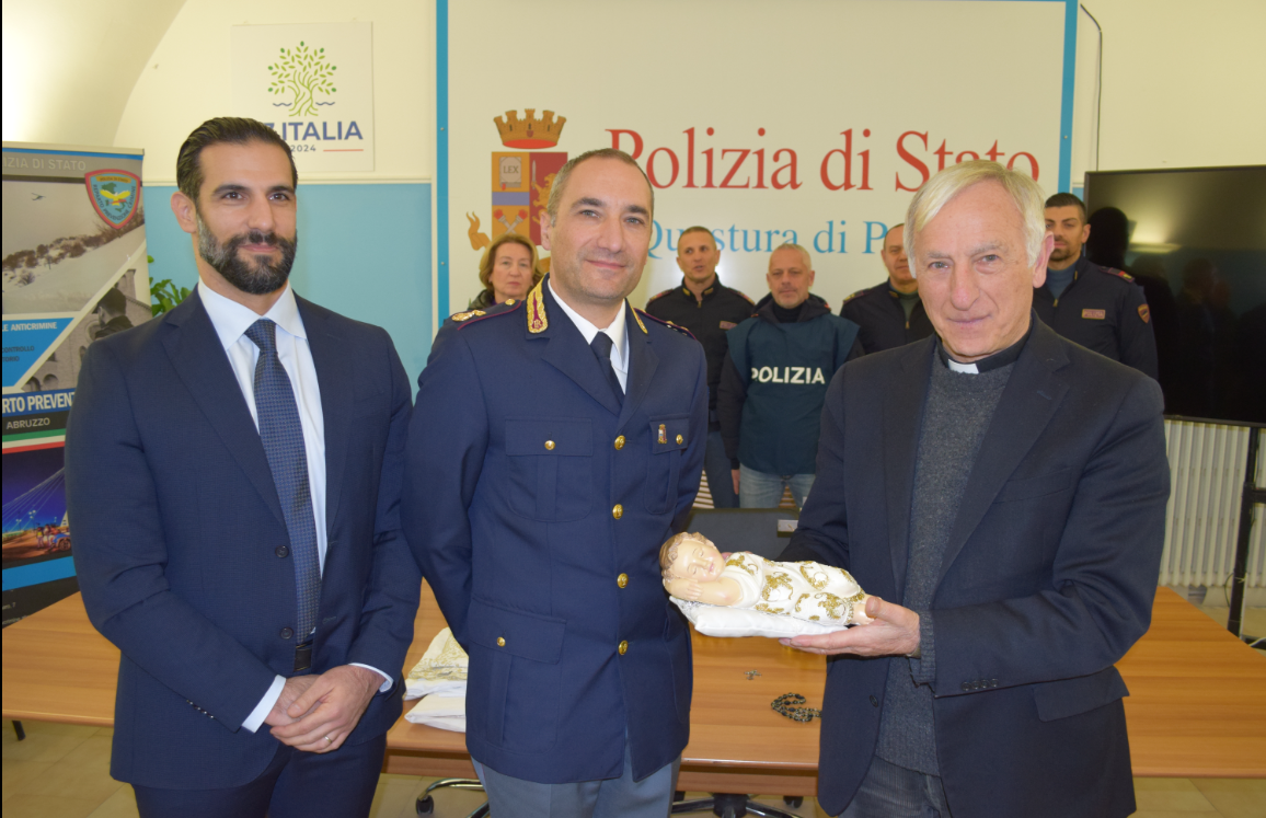A Pescara la Polizia ha ritrovato e riconsegnato il bambinello rubato da un 45enne dal presepe dalla Cattedrale di San Cetteo