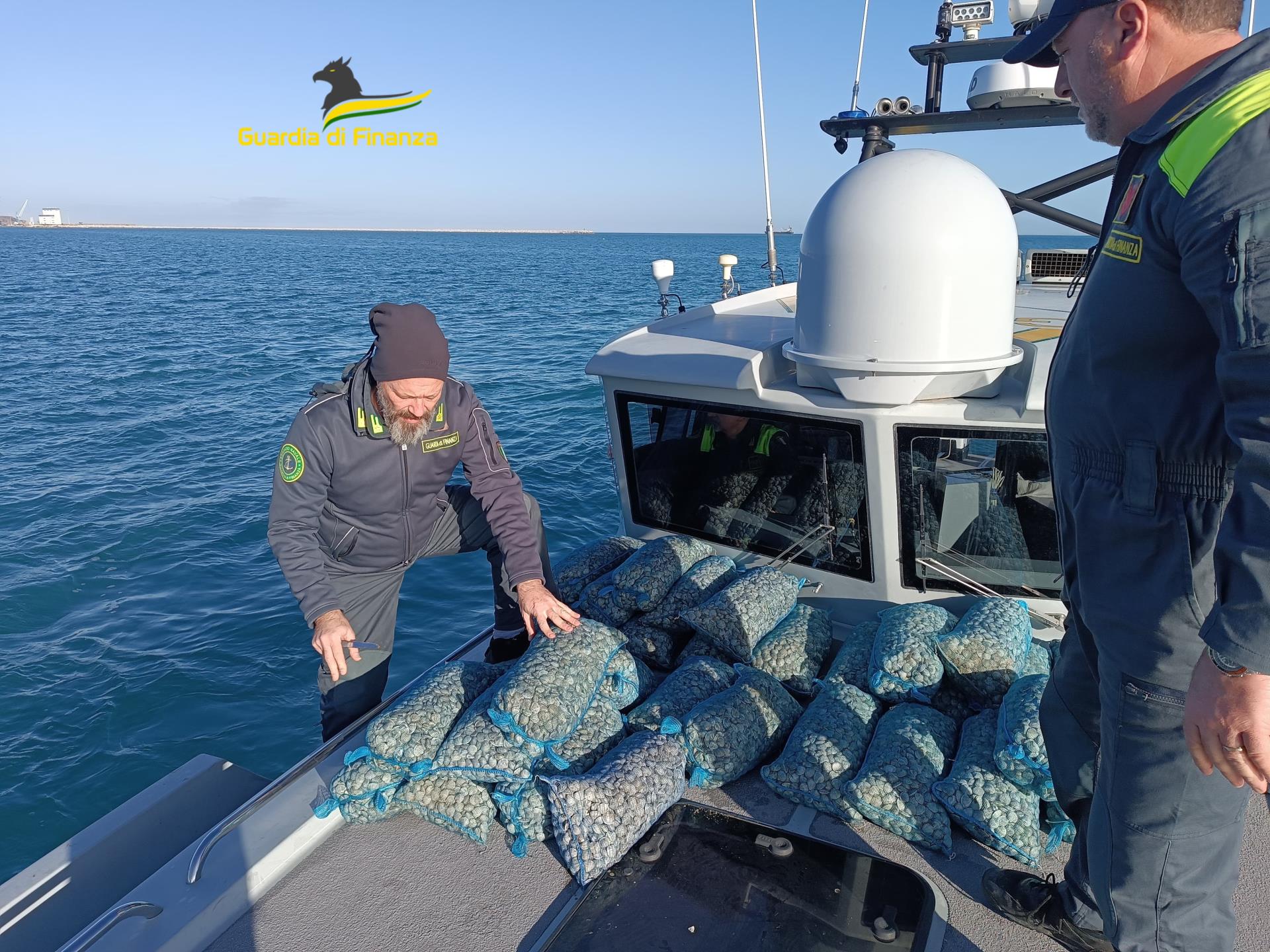 Una motovedetta della GdF ha fermato un peschereccio in prossimità del porto di Ortona con 340 kg di vongole eccedenti il limite giornaliero di pesca: trasgressore sanzionato con 2 mila euro, attrezzatura sequestrata e pescato, ancora vivo, rigettato in mare