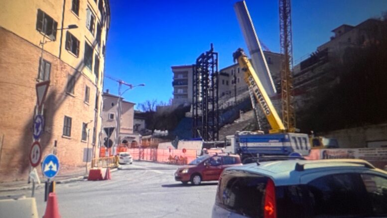In questi giorni sono state costruite due torri di appoggio provvisorie. Alla realizzazione sta provvedendo un raggruppamento di imprese formato da Taddei, Todima e Casarchitettura. Attualmente in via Fontesecco sono in corso i lavori per i micropali, su cui verrà costruita la platea in cemento armato dove saranno posizionate altri due torri di appoggio temporanee dal lato di via Giovanni XXIII.