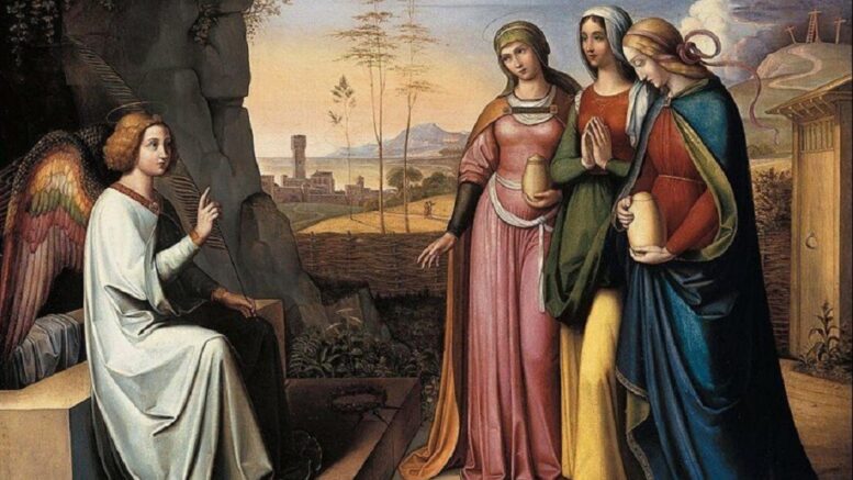 Come si legge nel Vangelo, a Pasquetta si celebra l’incontro con l’Angelo delle tre donne al sepolcro di Gesù risorto. Maria di Magdala, Maria, madre di Giacomo e Giuseppe, e Salomé si recarono nel luogo della sepoltura di Gesù con degli oli aromatici per imbalsamare il corpo di Cristo, ma davanti al sepolcro trovarono il masso di accesso alla tomba spostato e un angelo che annunciò loro la resurrezione di Cristo, comandando di divulgare l’accaduto.