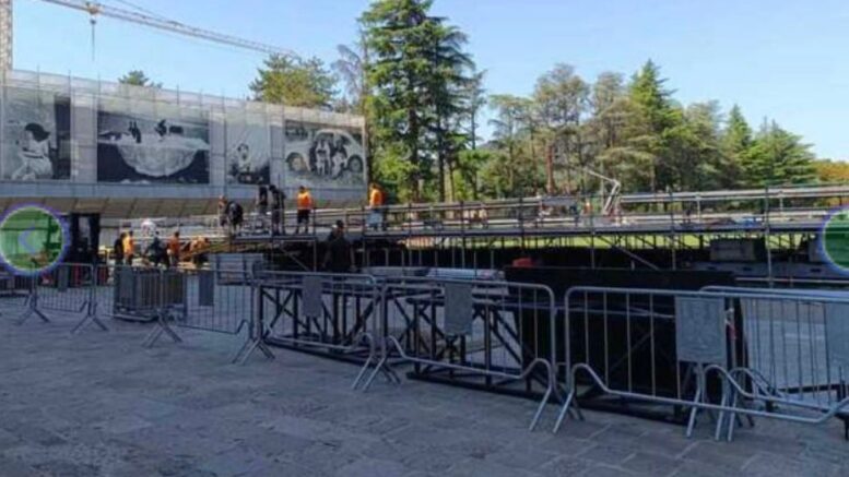 Dopo le polemiche degli scorsi anni, il palco è stato allestito quasi interamente sul prato, con l’obiettivo di non oscurare completamente la basilica. L’altro palco, quello di San Bernardino, è invece già operativo, grazie ai cantieri dell’immaginario.
