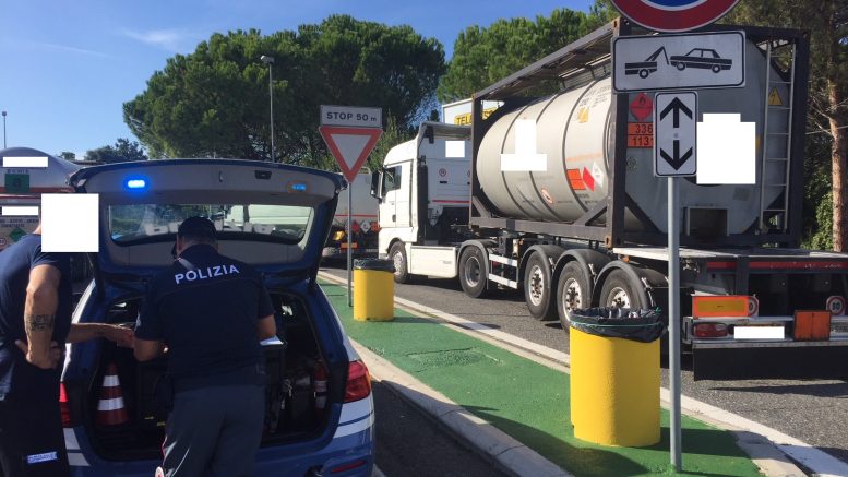 La polstrada di Chieti sotto il coordinamento operativo del Comandante provinciale Fabio Polichetti, unitamente ai Reparti di Lanciano e Vasto, che in attuazione di direttive del Ministero dell’interno ha provveduto ad intensificare i controlli ai mezzi, che tutti i giorni viaggiano sulle nostre strade ed autostrade, trasportanti materiali altamente pericolosi, infiammabili, tossici e corrosivi (benzina, gasolio, ammoniaca od altri liquidi o gas fortemente tossici e/infiammabili). Mezzi che per la particolarità del carico che trasportano segue delle regole rigidissime.