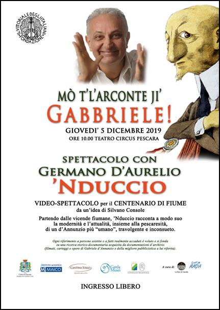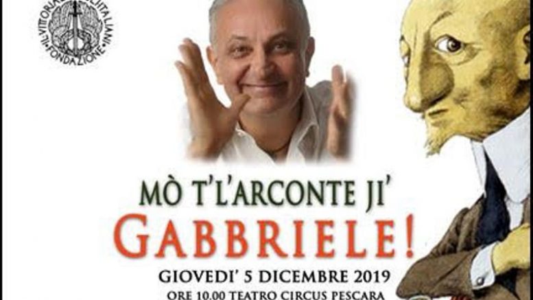 Giovedì 5 dicembre alle ore 10 al Circus di Pescara c’è la prima – con ingresso libero – del video-spettacolo di’Nduccio “Mò t’l’arconte ji’ Gabbriele!” con il Patrocinio della Fondazione del Vittoriale degli Italiani.