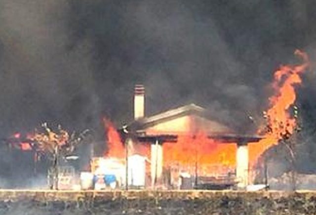 Una abitazione disabitata distrutta dalle fiamme di un grave e vasto incendio a Collelongo in Marsica