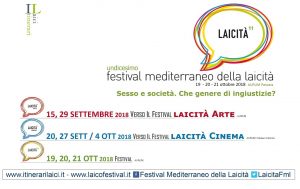 Dal 19 al 21 ottobre a Pescara si terrà l’undicesima edizione del Festival mediterraneo della laicità organizzato dall’Associazione Itinerari Laici .