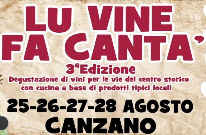 Dal 25 al 28 agosto torna Canzano, nel teramano, la terza edizione della manifestazione enogastronomica per le vie del borgo “Lu vine fa cantà”. Una vera e propria vetrina per l’enogastronomia del territorio con la possibilità di fare un salto nella storia e riscoprire le antiche cantine pubbliche e private, gli edifici e gli scorci più caratteristici del centro storico dell’antico borgo.