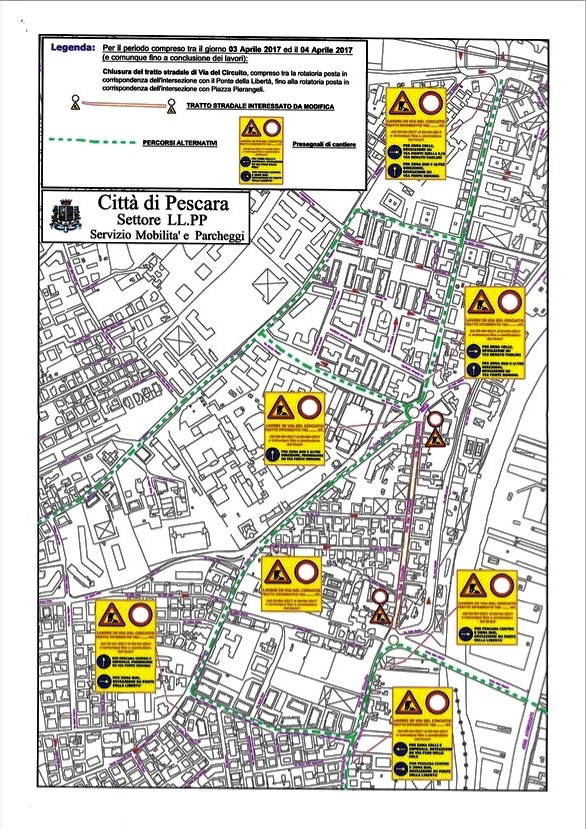 A Pescara Via del Circuito chiusa per lavori la prossima settimana dalla notte di lunedì fino alla serata di martedì. La viabilità alternativa.