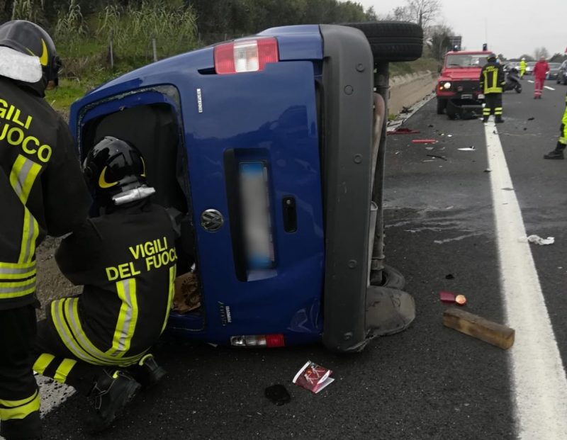E’ accaduto intorno alle 13:15 di domenica 23 dicembre: una Volkswagen Caddy che transitava in direzione sud tra i caselli di Val Vibrata e Mosciano Sant’Angelo, poco prima della stazione di servizio di Tortoreto si è ribaltata. Per cause in corso di accertamento da parte della Polizia Autostradale della Sottosezione di Pescara Nord, l’auto è terminata fuori strada ribaltandosi sul tettuccio e fermandosi vicino alla corsia di manovra. Sull’auto viaggiavano un uomo di 40 anni e la moglie di 32. I vigili del fuoco di Nereto hanno messo in sicurezza il mezzo alimentato a metano, da cui si era sprigionato del leggero fumo.