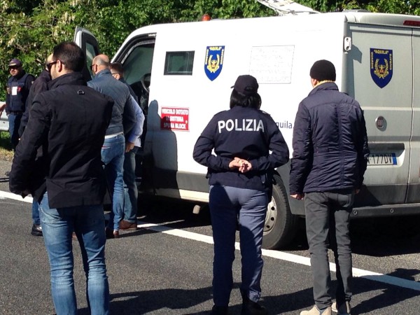 Il traffico è stato interrotto tra Pescara Sud e Pescara Ovest. La rapina è avvenuta intorno alle 6,40. Emergono i primi particolari: ci sarebbe stata una sparatoria tra i rapinatori ed una pattuglia della Polizia Stradale. I malviventi si sono dati alla fuga a bordo di un furgone ed avrebbero preso la Statale. Posti di blocco e caccia ai fuggitivi. Non ci sono vittime e feriti. All’interno del tratto chiuso il traffico é bloccato e si é formato un chilometro di coda. Per chi é diretto a Bologna l’uscita consigliata é quella di Pescara Sud ed il rientro a Pescara Ovest dopo aver percorso la SS 16. Per chi viaggia verso Taranto uscita consigliata Pescara Ovest.