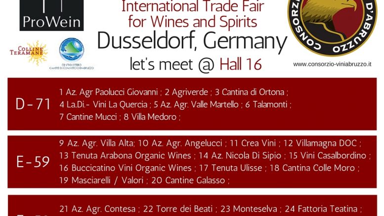 Dal 13 al 15 Marzo l’Abruzzo al Prowein di Dusseldorf, grazie alla regia del Consorzio di Tutela Vini d’Abruzzo, con le Colline Teramane e il Centro estero delle Camere di Commercio.