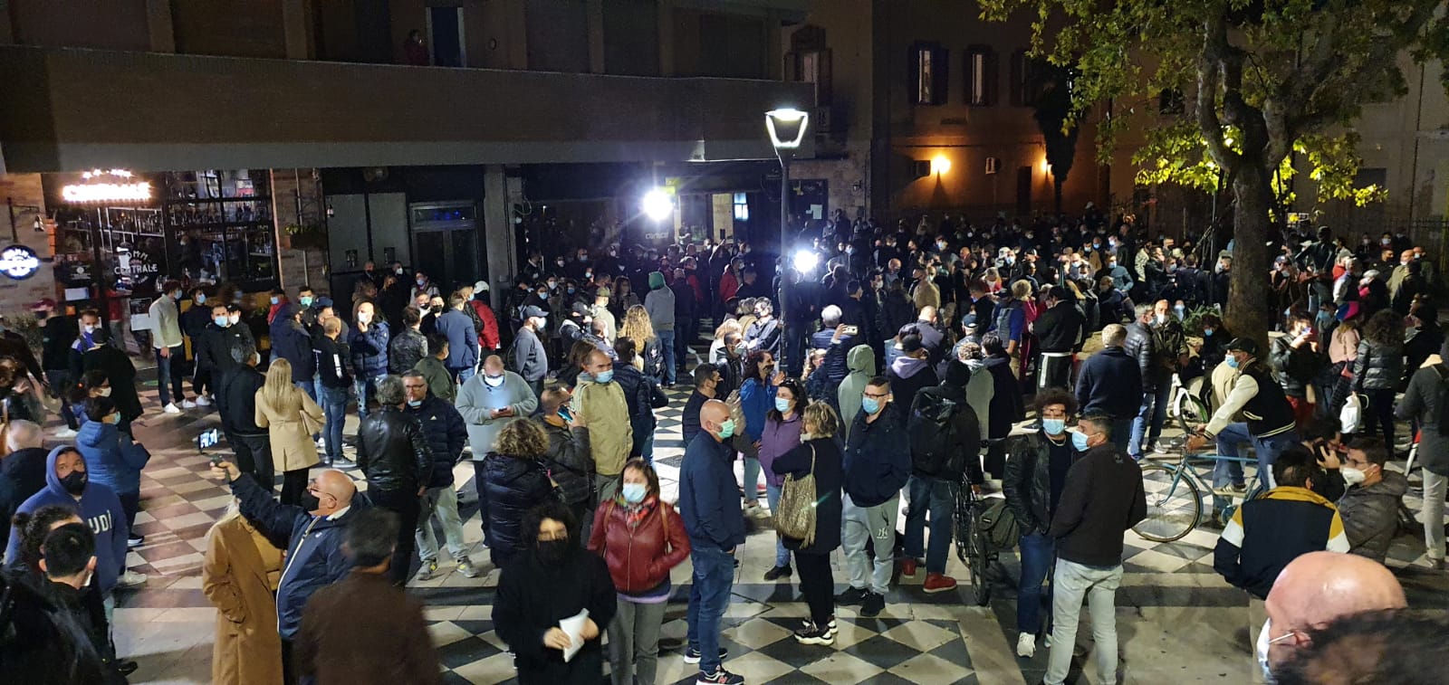 AGGIORNAMENTO ORE 18– Come potete vedere dalle foto, in piazza Muzii a Pescara in tantissimi si sono radunati per la protesta contro l’ultimo DPCM. Commercianti e ristoratori che non sembrano conoscere il timore dei contagia giudicare da quanti sono e soprattutto da quanto sono ammassati. Non mancano le pattuglie della Polizia ma il colpo d’occhio restituisce un evidente zero distanziamento tra i moltissimi ritrovatisi sin dalle 17:30.