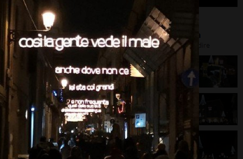 Tanti apprezzamenti per le luminarie scelte per ricordare Ivan Graziani a Teramo, con i versi di “Maledette malelingue”.
