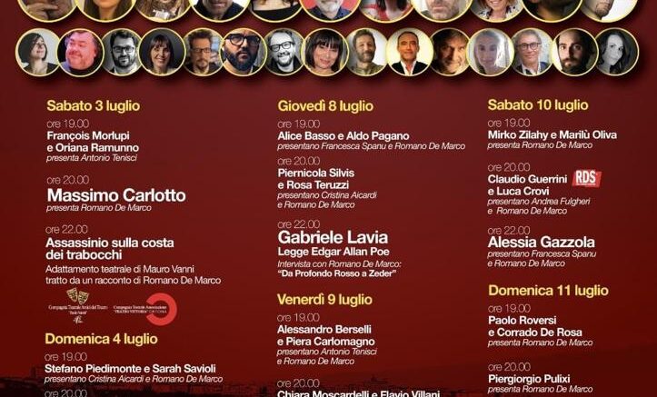 Già dallo scorso anno, con la presenza di autori del calibro di Marcello Fois, Diego De Silva, Valerio Varesi, ma anche con il teatro, i fumetti, la televisione (con la presenza di Francesco Acquaroli intervistato da Tiberio Timperi) l’evento ha aperto le porte alla cultura e all’intrattenimento a trecentosessanta gradi. C’è stato spazio per autori ortonesi non giallisti e anche quest’anno l’attenzione agli artisti locali si concretizzerà con una rappresentazione teatrale dell’associazione Amici del teatro nella serata inaugurale del 3 luglio. In scena la pièce originale Assassinio sulla costa dei trabocchi.