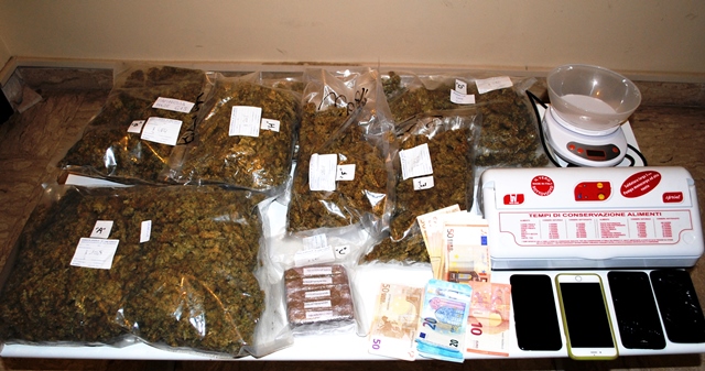Nell’ambito dei servizi di controllo posti in essere sulla costa teramana in occasione della stagione estiva, eri gli agenti del Commissariato P.S. di Atri hanno fermato e controllato un’autovettura a bordo della quale viaggiavano due coppie di giovani. Insospettiti dalla targa dell’automobile che risultava “gravata” da un provvedimento di sequestro amministrativo, gli operatori di polizia hanno controllato meglio il conducente e i passeggeri che, in apparenza due coppie “insospettabili”, si mostravano particolarmente agitati. Dopo la perquisizione, i poliziotti hanno rinvenuto all’interno di un borsone nascosto nel bagagliaio del veicolo, due involucri di cellophane contenenti sostanza stupefacente del tipo marijuana, per un peso di circa 523 grammi. La perquisizione dei quattro giovani, due ragazzi di anni 24 e 21( M. V. e O.M.) e due ragazze di anni 20 e 16 (S.M. e L.I.), tutti incensurati e residenti in provincia di Milano, è stata estesa anche alle stanze d’albergo dove avrebbero soggiornato a Roseto degli Abruzzi e qui hanno rinvenuto, all’interno di un altro borsone occultato sotto il letto, ulteriori quattro involucri contenenti la medesima sostanza nonché una bustina di hashish, oltre a materiale per la pesatura e il confezionamento della sostanza stupefacente. In totale sono stati sequestrati 3,152 kg di marijuana e 496 grammi di hashish, verosimilmente destinati ad alimentare il mercato della costa teramana durante il periodo estivo. I quattro ragazzi sono stati arrestati per detenzione ai fini di spaccio di sostanza stupefacente: tre maggiorenni associati alla Casa Circondariale di Teramo, mentre la minore è stata accompagnata all’Aquila nell’apposito Istituto Penale.