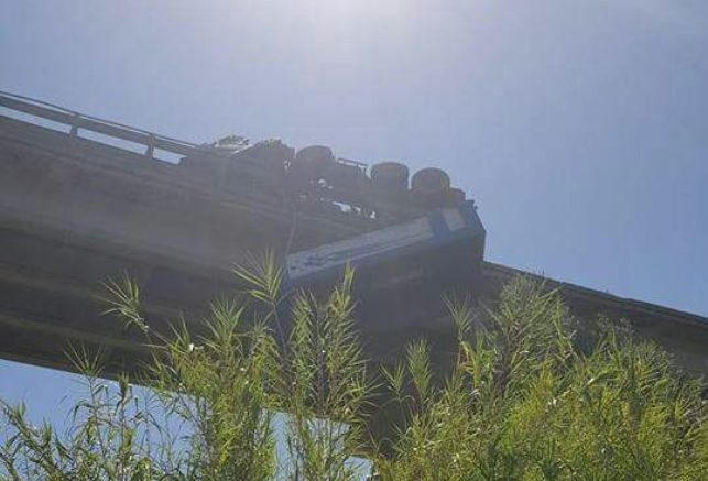 Incidente a Bucchianico: camion a rimorchio sfonda il guardrail e resta in bilico sul viadotto della Fondovalle.