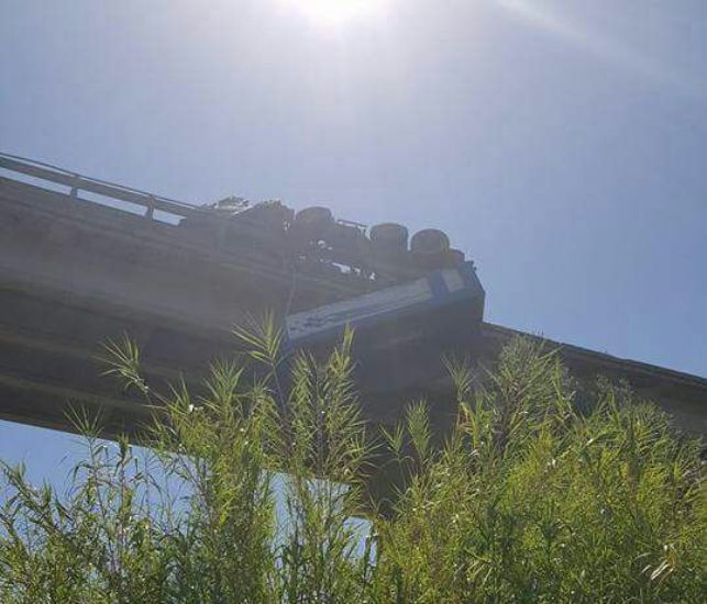 Incidente a Bucchianico: camion a rimorchio sfonda il guardrail e resta in bilico sul viadotto della Fondovalle.