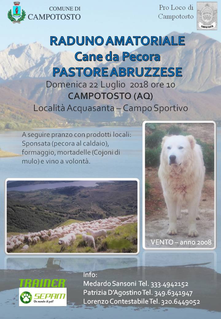 Raduno amatoriale del cane da pecora Pastore Abruzzese domenica 22 luglio 2018 a Campotosto: ci saranno anche i cani di Rigopiano sopravvissuti alla valanga.