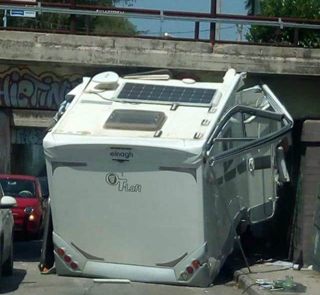 A Chieti camper incastrato sotto il cavalcavia nella zona industriale.