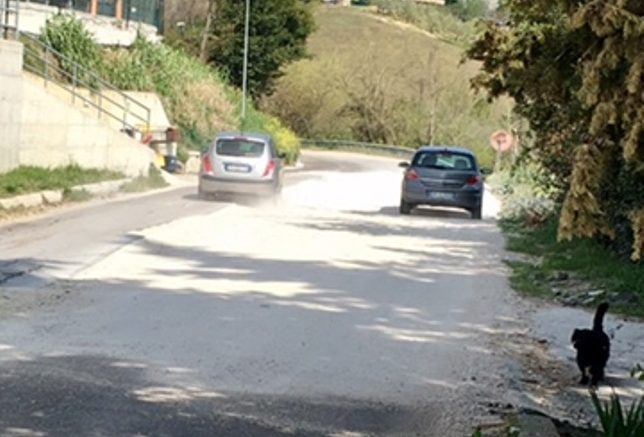 In contrada Colle Sant’Antonio (SP8 che porta a Casalincontrada) c’è una situazione critica dovuta alla strada franata dopo la neve ed a oggi ancora sommersa di sabbia stabilizzante. Dopo numerose chiamate a vigili e Provincia, nulla di fatto: siamo costretti a vivere con finestre chiuse e bambini chiusi dentro casa a causa dell’aria irrespirabile dovuta alle eccessive quantità di polveri alzate dal passaggio di veicoli e mezzi pesanti ! Inoltre una situazione di pericolo che si crea con il passaggio di mezzi che invadono la corsia opposta per evitare la frana. La situazione è invivibile!!! Spero in un vostro aiuto …” (mail firmata)