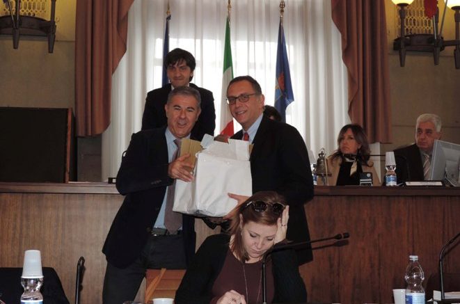 Il Capogruppo di Forza Italia al Comune di Pescara Marcello Antonelli stamane, a nome dei consiglieri di Forza Italia, Pescara in Testa e dell’Associazione culturale #Pescaraprima che hanno partecipato all’iniziativa, ha consegnato al sindaco Alessandrini durante la seduta del Consiglio comunale l’urna contenente le schede votate dai pescaresi contro la realizzazione della pista ciclabile in via Leopoldo Muzii. Sono 394 voti contrari, raccolti in due ore e mezza lo scorso 12 novembre, rispetto ai soli 6 voti a favore su 400 schede disponibili.