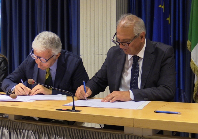 Il Presidente del Consiglio regionale Giuseppe Di Pangrazio e il professor Mario Rainone, per l’Università d’Annunzio, hanno sottoscritto una convenzione per consentire a giovani laureati abruzzesi percorsi di alta formazione in università straniere di eccellenza.