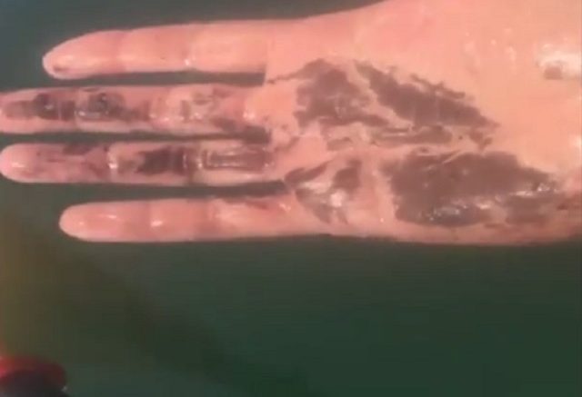 “Ho ricevuto la telefonata di un associato della zona il cui cliente, un sub di Bergamo, dopo l’immersione nelle giornate di venerdì e sabato scorsi è uscito completamente ricoperto di una sostanza marrone scuro petrolio che ricopriva la superficie dell’acqua per uno spessore di una trentina di centimetri sia a riva che fuori dalla scogliera. Si è dovuto subito lavare e, allarmato, ha chiamato il numero di emergenza della Capitaneria di Porto che gli ha risposto “Ma lì stanno perforando [??!!??]” senza dare ulteriori spiegazioni.”