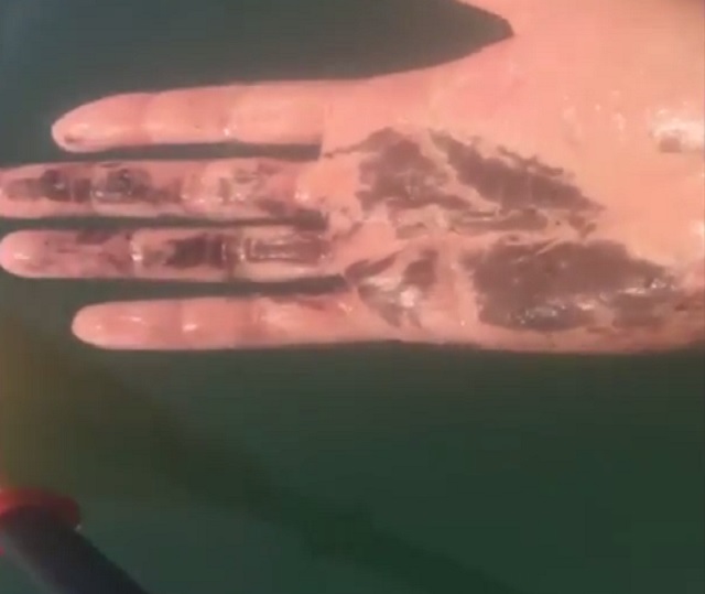 “Ho ricevuto la telefonata di un associato della zona il cui cliente, un sub di Bergamo, dopo l’immersione nelle giornate di venerdì e sabato scorsi è uscito completamente ricoperto di una sostanza marrone scuro petrolio che ricopriva la superficie dell’acqua per uno spessore di una trentina di centimetri sia a riva che fuori dalla scogliera. Si è dovuto subito lavare e, allarmato, ha chiamato il numero di emergenza della Capitaneria di Porto che gli ha risposto “Ma lì stanno perforando [??!!??]” senza dare ulteriori spiegazioni.”