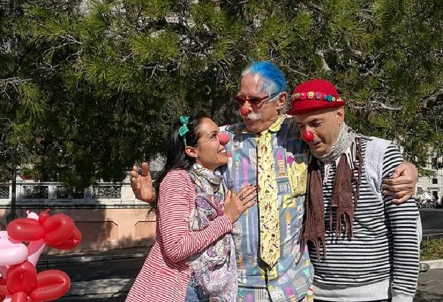 Luca Giuliani (clown Kimusky) e Manuela Tarantelli (clown Voccape’), volontari clown della Ricoclaun di Vasto, hanno deciso di unirsi in un matrimonio clown simbolico, ma estremamente emozionante, con il fondatore della clown terapia Patch Adams, alla presenza di un piccolo gruppo di amici, tra cui Rosaria Spagnuolo (clown Eric), presidente della loro associazione. Patch, che è in Italia per una serie di workshop nel Centro Italia, ha accolto con grande entusiasmo il desiderio dei due ragazzi celebrando la cerimonia con un rito semplice e simbolico in un meraviglioso angolo di Perugia. Ha incoraggiato Kimusky e Voccape’ ad amarsi con autenticità cercando sempre di fare del proprio meglio per donarsi reciprocamente felicità. Per la Ricoclaun la promessa di Patch di venire a Vasto nel 2018