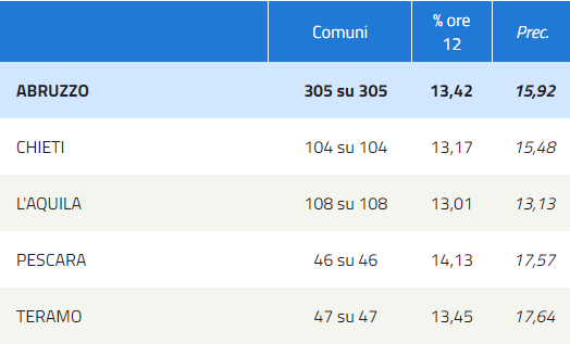 Affluenza in calo alle elezioni regionali in Abruzzo. Alle 12 ha votato il 13,42% degli aventi diritto.