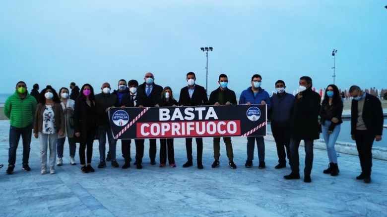 “Una misura che va revocata – hanno dichiarato Etelwardo Sigismondi e Stefano Cardelli, rispettivamente coordinatori regionale e provinciale del partito – perché trattasi di una misura devastante per l’economia e anticostituzionale. Il coprifuoco non è ammissibile in un Paese democratico, oltreché inutile sotto il profilo dei contagi. Il virus non circola maggiormente dopo le 22 e le già timide aperture non possono essere ulteriormente compromesse. Manifestiamo a Pescara, come in tutta Italia, per testimoniare il nostro più totale rifiuto a questa norma assurda, priva di buon senso e che ha il solo effetto di distruggere le nostre attività economiche ed il nostro turismo”.