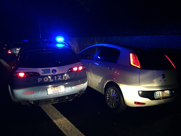 Sorpresi di trovare la carreggiata sbarrata da agenti in uniforme, hanno tentato di sfuggire al posto di blocco. Uno di loro ha tentato di investire gli agenti. erano a bordo di una “Grande Punto” Fiat appena rubata a Francavilla al Mare e una altra Punto utilizzata per la “trasferta. Spettacolare la sequenza; l’auto ha forzato il blocco stradale, ma è stata raggiunta e affiancata da una pattuglia che l’ha affiancata impedendo la fuga del malvivente, un 30enne pregiudicato di San Marco in Lamism stessa città del complice, 35 enne, fermato subito dopo. Dovranno rispondere di furto aggravato, di resistenza a pubblico ufficiale e delle altre ipotesi di reato al vaglio della magistratura di Vasto.