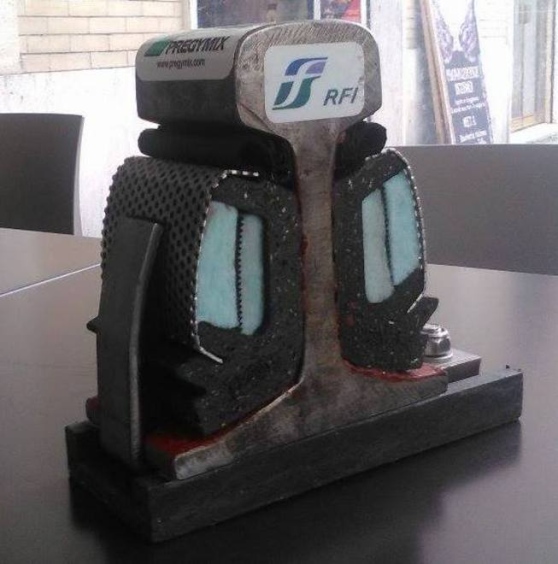 Un po’ funziona, ma l’effetto non è del tutto quello sperato. E’ questo in sintesi il giudizio emerso dopo i primi tre mesi di sperimentazione a Francavilla dell’innovativo sistema di attenuazione dell’inquinamento acustico generato dal passaggio dei treni sui binari ferroviari, brevettato dall’imprenditore di Sulmona Andrea Lancia, e posto in azione sperimentalmente da RFI su 600 metri nel tratto che attraversa la cittadina adriatica. La riduzione del rumore è mediamente del 25%. Il dispositivo dunque funziona, non ha dato controindicazioni meccaniche e funzionali, ma non risolve drasticamente il problema come forse si sperava. Il sistema (nella foto) consiste in una sorta di cuscinetto gommoso inserito sulla rotaia e protetto da una lamiera in acciaio, realizzato per ridurre lo sfregamento sulla rotaia. RFI guarda con estremo interesse al dispositivo, decisamente meno impattante delle barriere verticali, ma -al momento- non altrettanto efficace. La sperimentazione servirà comunque a perfezionare il dispositivo, il cui ideatore non si è dato per vinto: effettuate le migliorie si procederà ad una nuova sperimentazione.