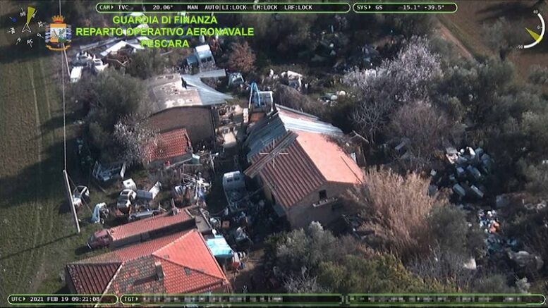Inchiesta su traffico illecito di rifiuti: elicottero dalla Guardia di Finanza individua una discarica abusiva di 6.000 mq nel Pescarese. Un indagato e migliaia di euro di tributi evasi.