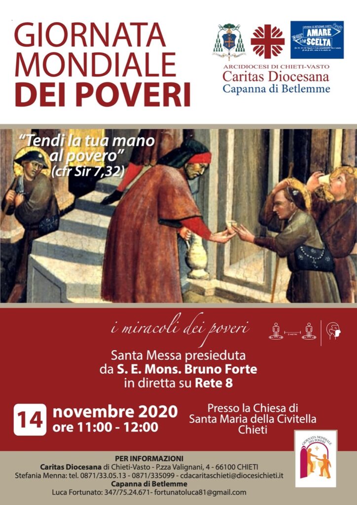 In occasione della Giornata Mondiale dei Poveri, Rete8 trasmetterà sabato 14 novembre la Santa Messa celebrata dall’Arcivescovo di Chieti-Vasto Mons. Bruno Forte, a partire dalle ore 11.