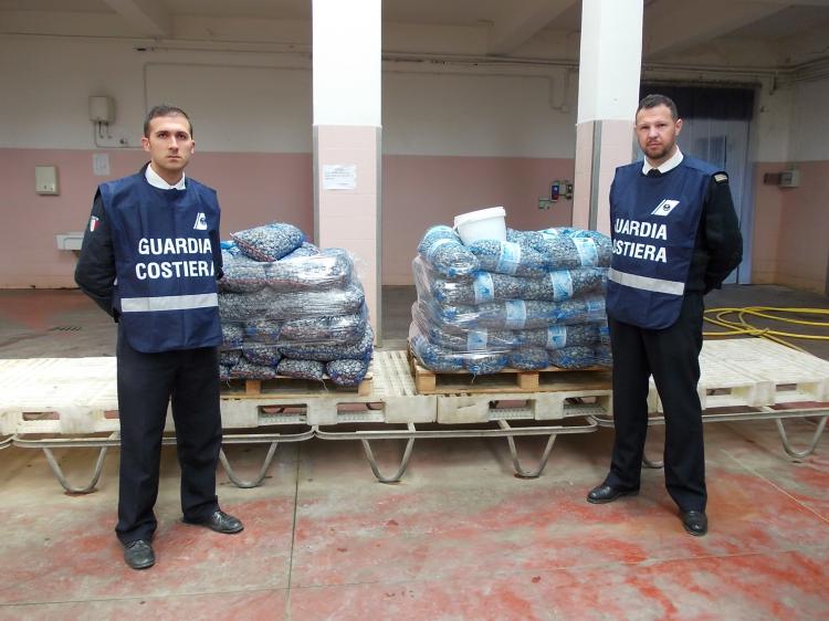 La guardia costiera di Giulianova ha sequestrato 25 sacchi per un totale di 320 kg di vongole su un’imbarcazione.