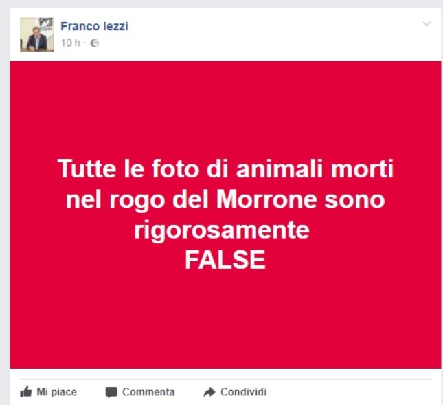 Il Presidente del Parco della Majella Franco Iezzi scrive su Facebook: “False tutte le foto degli animali morti per l’incendio sul Morrone”.